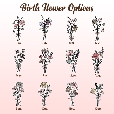 Nombre personalizado y flor de nacimiento : Añade un nombre personalizado junto con la flor de nacimiento correspondiente para crear una pieza única que refleje tu estilo personal. Este detalle tan especial le da un significado especial y convierte un simple estuche en algo único.