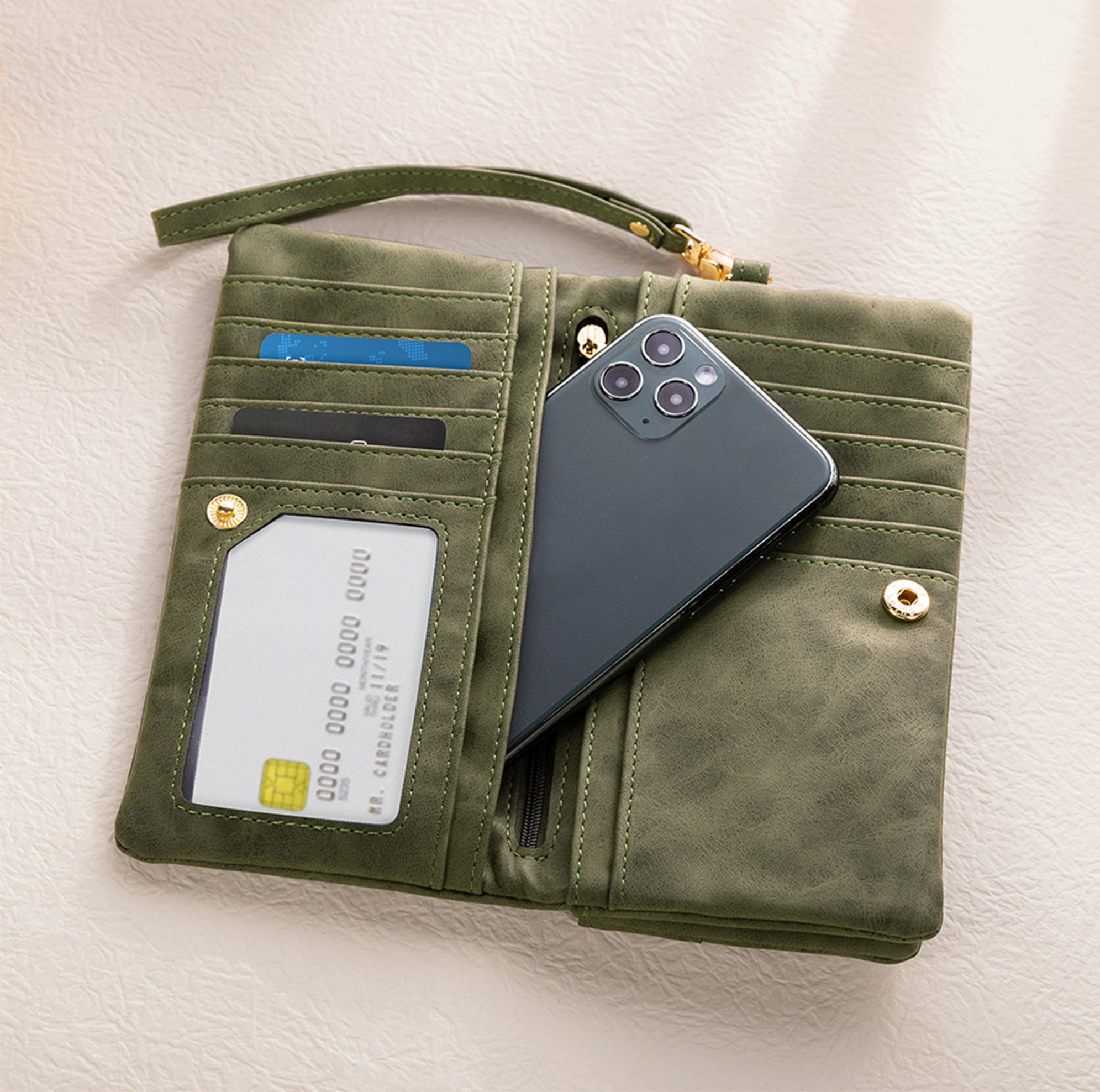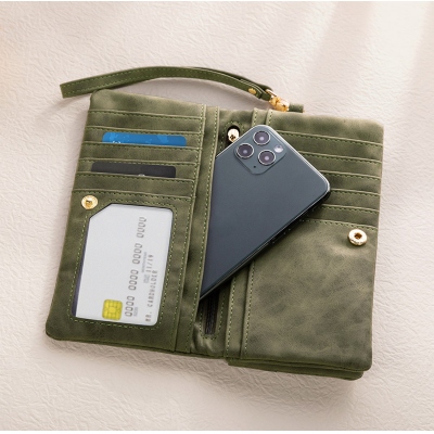 Práctica y multifuncional : con un diseño inteligente que incluye una ventana para identificación, 11 ranuras para tarjetas, 4 compartimentos para billetes, un bolsillo para el teléfono y 2 bolsillos con cremallera, esta cartera te ayuda a mantener tus pertenencias ordenadas y organizadas. La protección RFID ofrece seguridad adicional, mientras que la correa para la muñeca facilita su transporte para ir de compras, de viaje o para tus recados diarios.