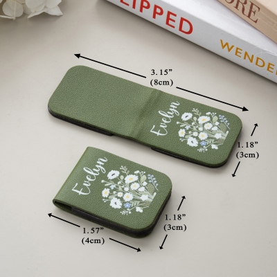 Marcapáginas personalizado con nombre y flor de nacimiento, clip magnético de cuero, regalo de cumpleaños, aniversario o graduación para amantes de los libros, bibliotecarios y mujeres.