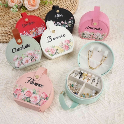 Estuche portátil para joyería con asa, personalizado, con nombre y flor de nacimiento