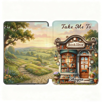 Ilustración de una librería encantadora : esta funda para Kindle presenta una preciosa ilustración de una acogedora librería enclavada en un pintoresco paisaje rural. La obra evoca calidez y asombro, invitando a los lectores a un mundo de historias e imaginación.