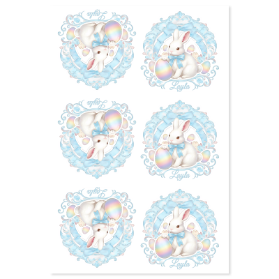 | Estilo | Pegatinas de Pascua con nombre personalizado, conejito, huevos de arcoíris |