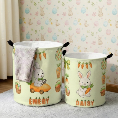 | Estilo | Cesta de almacenamiento personalizada con nombre, zanahoria y conejo, con asas |