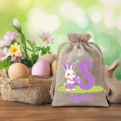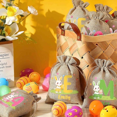 | Estilo | Bolsa de regalo de Pascua con nombre personalizado, conejito de dibujos animados y huevo colorido, alfabeto |