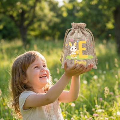 Nombre personalizado : Cada bolsa se puede personalizar con el nombre de su hijo/a y su inicial del alfabeto, creando una bolsa de dulces de Pascua única. Le da un toque especial a las actividades de Pascua y ayuda a los niños a identificar fácilmente su propia bolsa durante la búsqueda de huevos.
