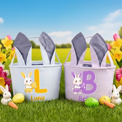 Estilo Alfabeto de Conejito : Esta canasta de Pascua presenta un adorable conejito de dibujos animados sosteniendo un huevo brillante, combinado con una letra del alfabeto para un alegre look primaveral. Las orejas de conejo le dan un toque encantador que capta la atención de los niños al instante.