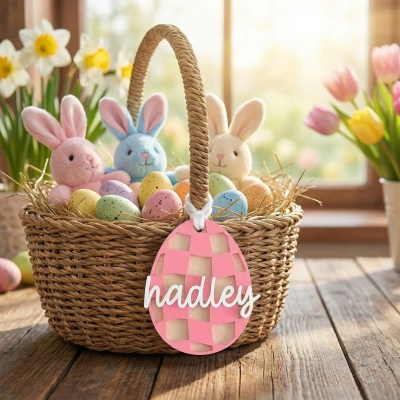 Etiqueta personalizada para cesta de Pascua con huevo a cuadros y nombre