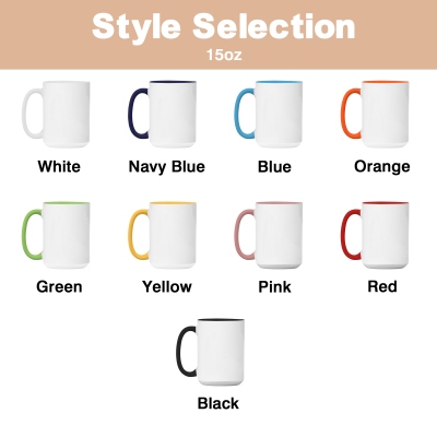 Cerámica duradera bicolor : Fabricada en cerámica resistente con un interior colorido y un asa a juego, esta taza está disponible en tamaños de 325 ml (11 oz) o 444 ml (15 oz). El diseño multicolor le da un toque vibrante, mientras que su superficie lisa y esmaltada facilita la limpieza tras el uso diario.