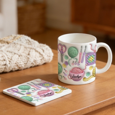Nombre personalizado : Añade un nombre personalizado para crear una taza única. El toque personalizado realza el tema del ganchillo y convierte una taza de café común en un recuerdo especial para las amantes del tejido, las madres o las abuelas que disfrutan de su manualidad favorita.