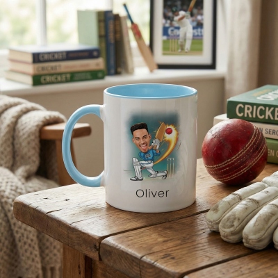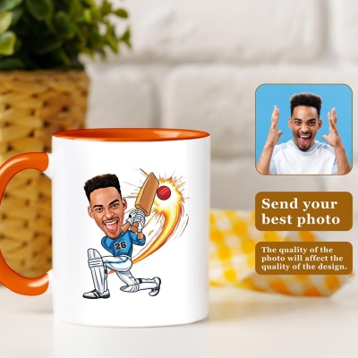 | Estilo | Taza de jugador de críquet con caricatura de foto y nombre personalizado |