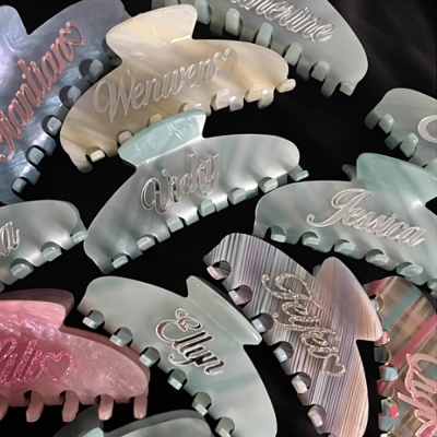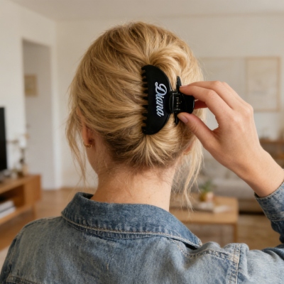 | Estilo | Pinza de garra con purpurina y nombre personalizado |