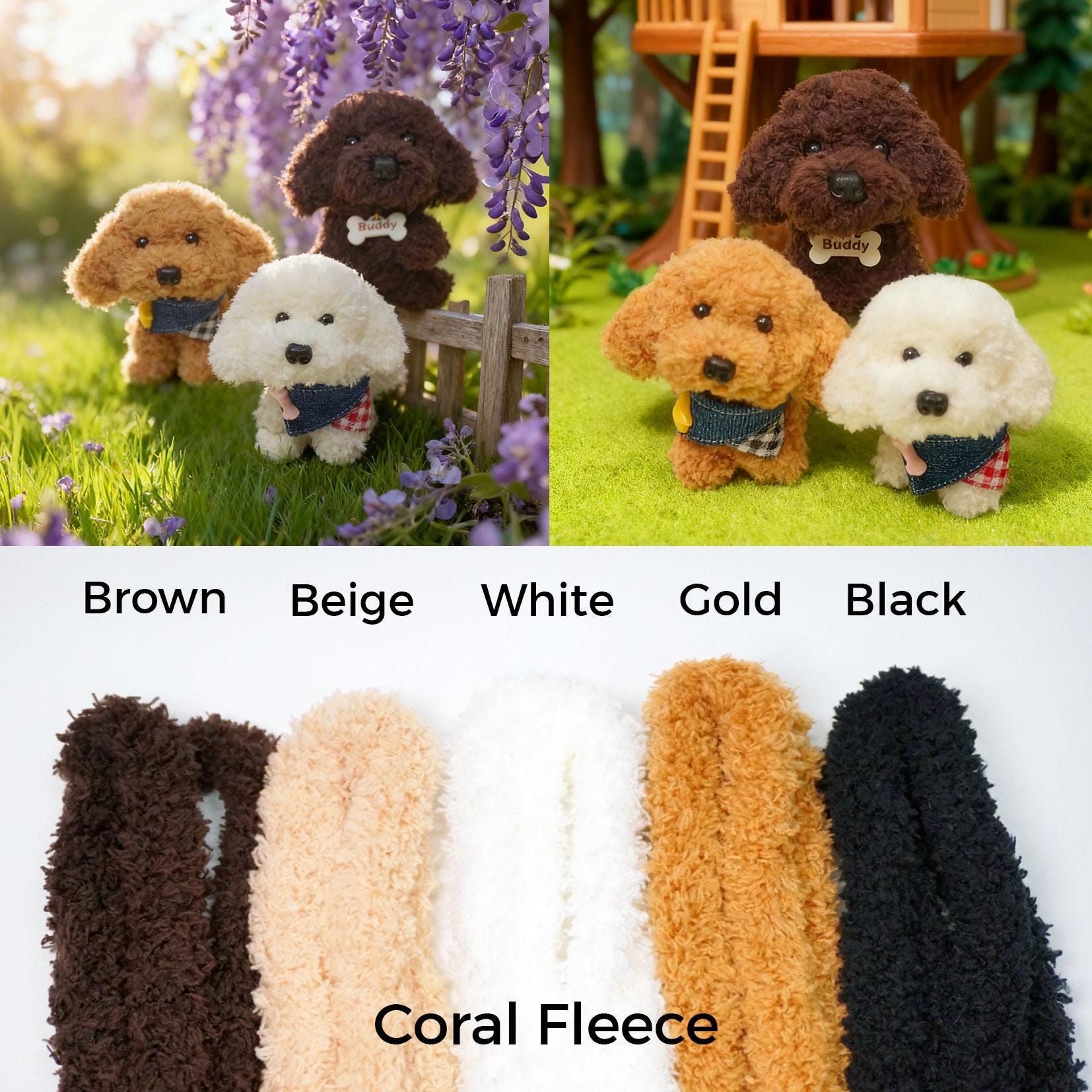 | Estilo | Adorno de cachorro de forro polar coral hecho a mano con nombre personalizado |