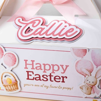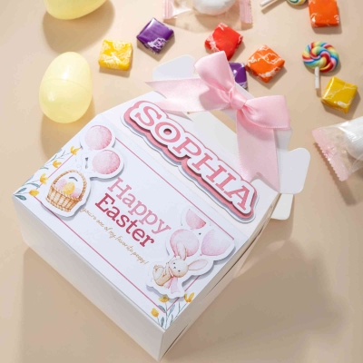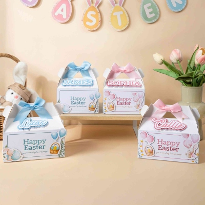 | Estilo | Caja de regalo con asa y lazo de conejito de Pascua personalizado con nombre |