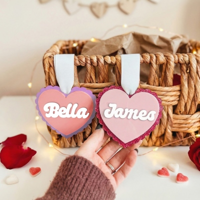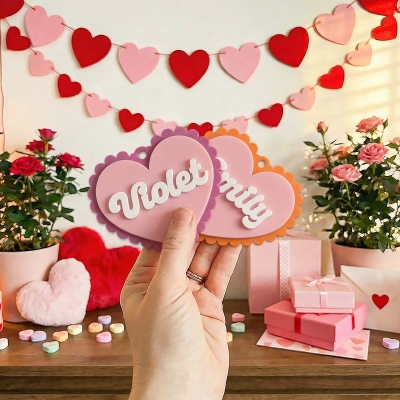 Nombre personalizado : cada etiqueta de corazón presenta un nombre personalizado, lo que la convierte en un recuerdo significativo para las parejas y agrega un toque personal que celebra un vínculo compartido.