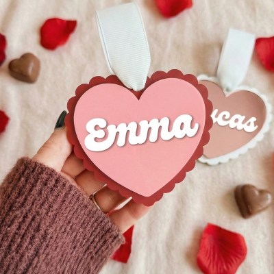 Acabado de material acrílico : elaborado con acrílico suave con un aspecto claro y pulido, este adorno de corazón con nombre ofrece una sensación liviana, letras nítidas y una claridad duradera para la decoración diaria.