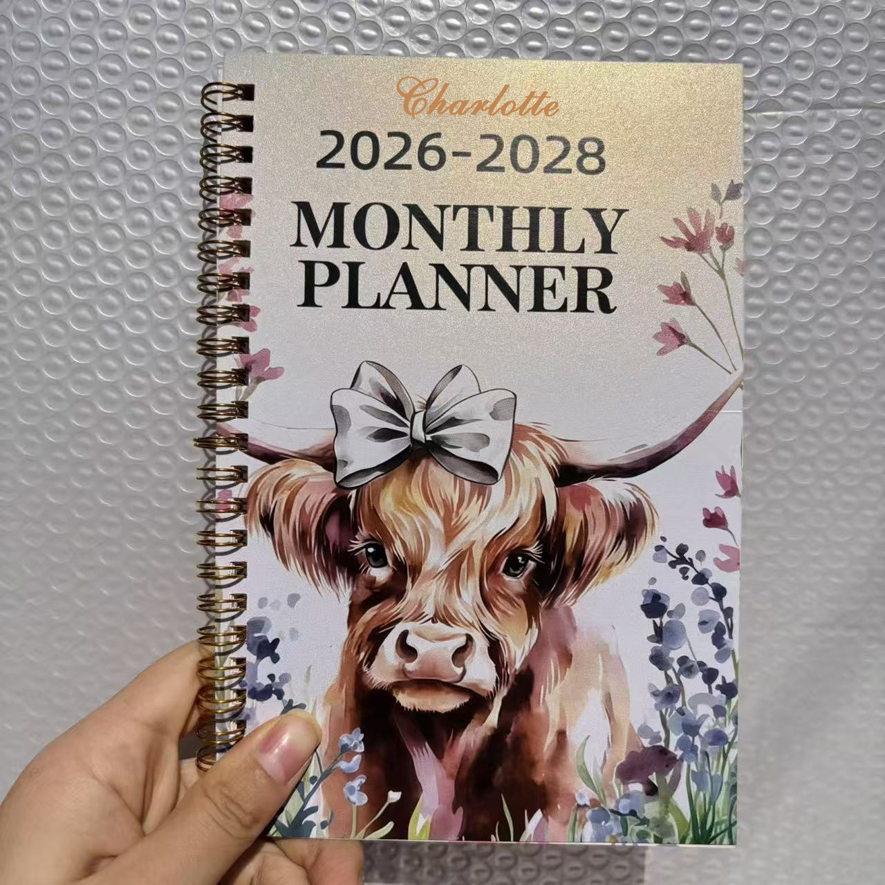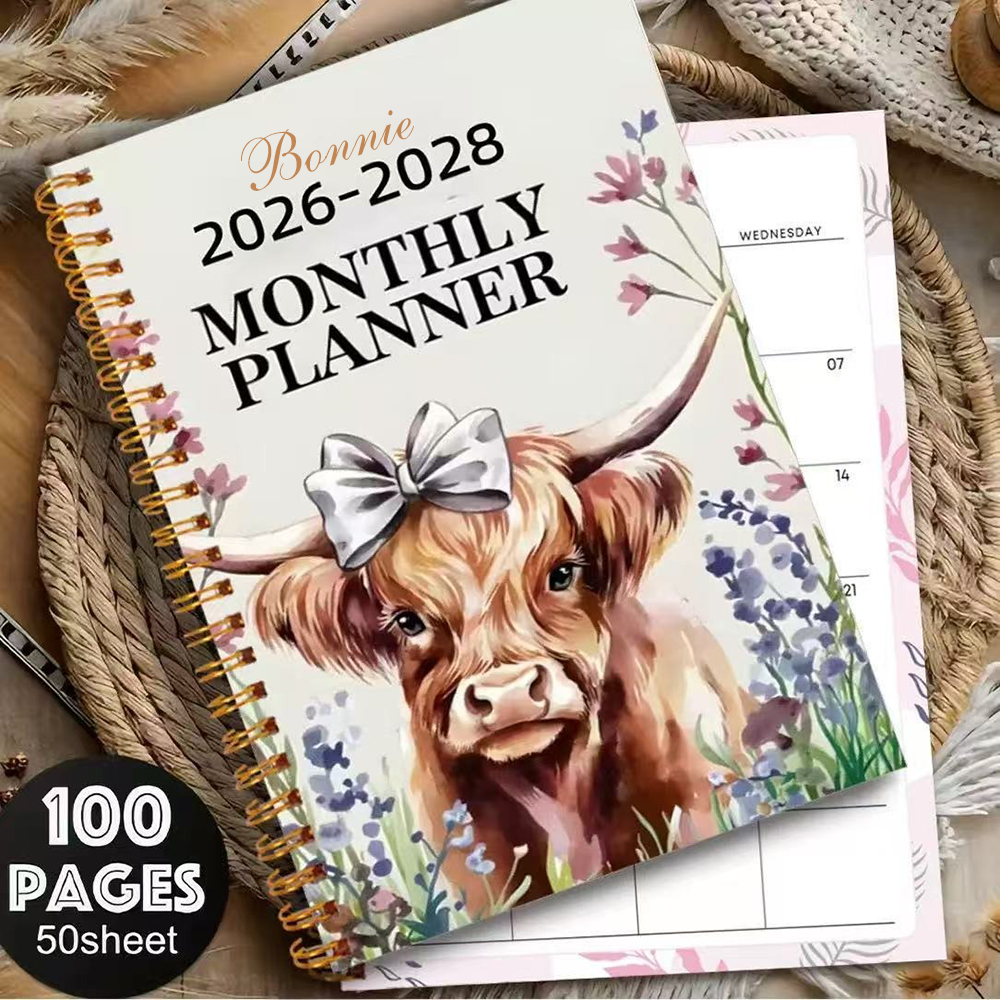 | Estilo | Cuaderno planificador mensual personalizado con nombre de vaca de las Tierras Altas (2026-2028) |