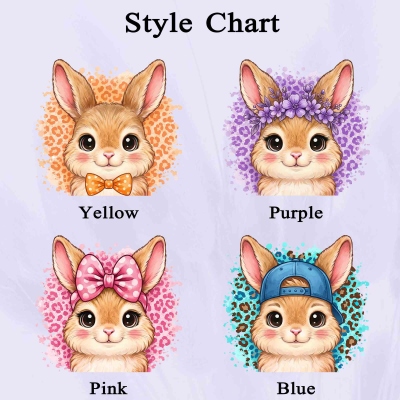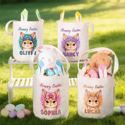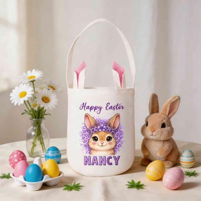 | Estilo | Canasta de Pascua con conejito de dibujos animados con estampado de leopardo y nombre personalizado |