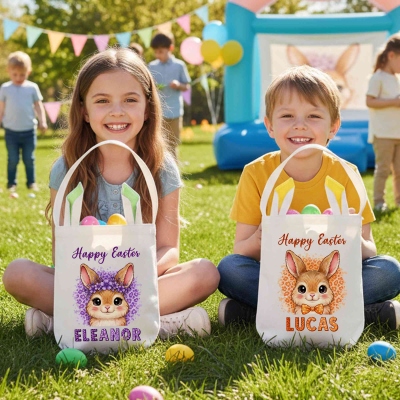 Nombre personalizado : Cada canasta se puede personalizar con el nombre de su hijo/a en el frente, creando un regalo de Pascua único y verdaderamente especial. El toque personalizado ayuda a los niños a identificar fácilmente su canasta de Pascua y la convierte en un recuerdo que podrán usar año tras año.