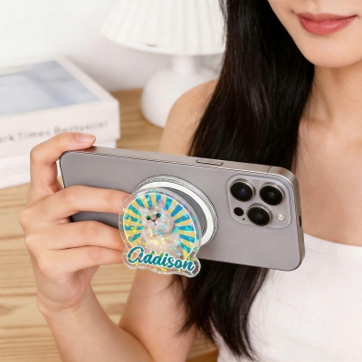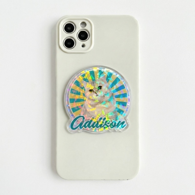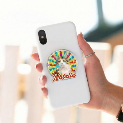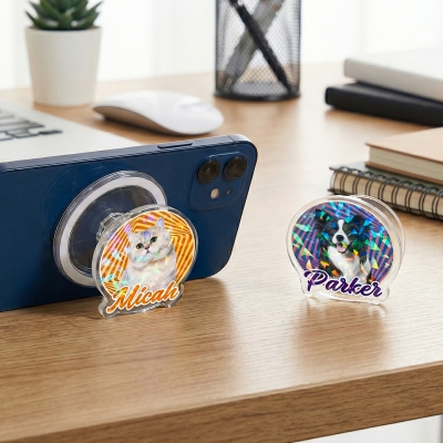 Diseño de retrato de mascota : este soporte para teléfono presenta un adorable diseño con la foto de tu mascota y su nombre, para un look divertido y entrañable. El colorido retrato resalta a tu perro o gato de una manera encantadora, convirtiendo un accesorio cotidiano en un pequeño homenaje a tu amigo peludo.