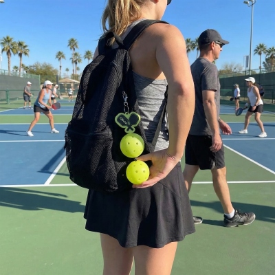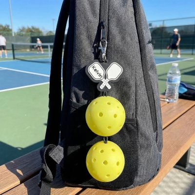 Court Companion: ideal para jugadores, entrenadores o aficionados que quieran mostrar su pasión por el pickleball. Le da un toque personal a cualquier bolso, taquilla o llavero, y arranca sonrisas cuando los demás ven su nombre y su deporte favorito.