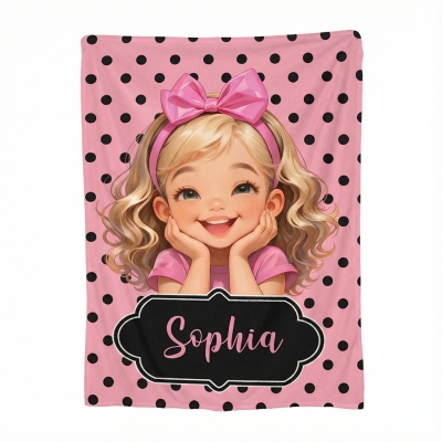 | Estilo | Manta personalizada con lunares y nombre para niña |