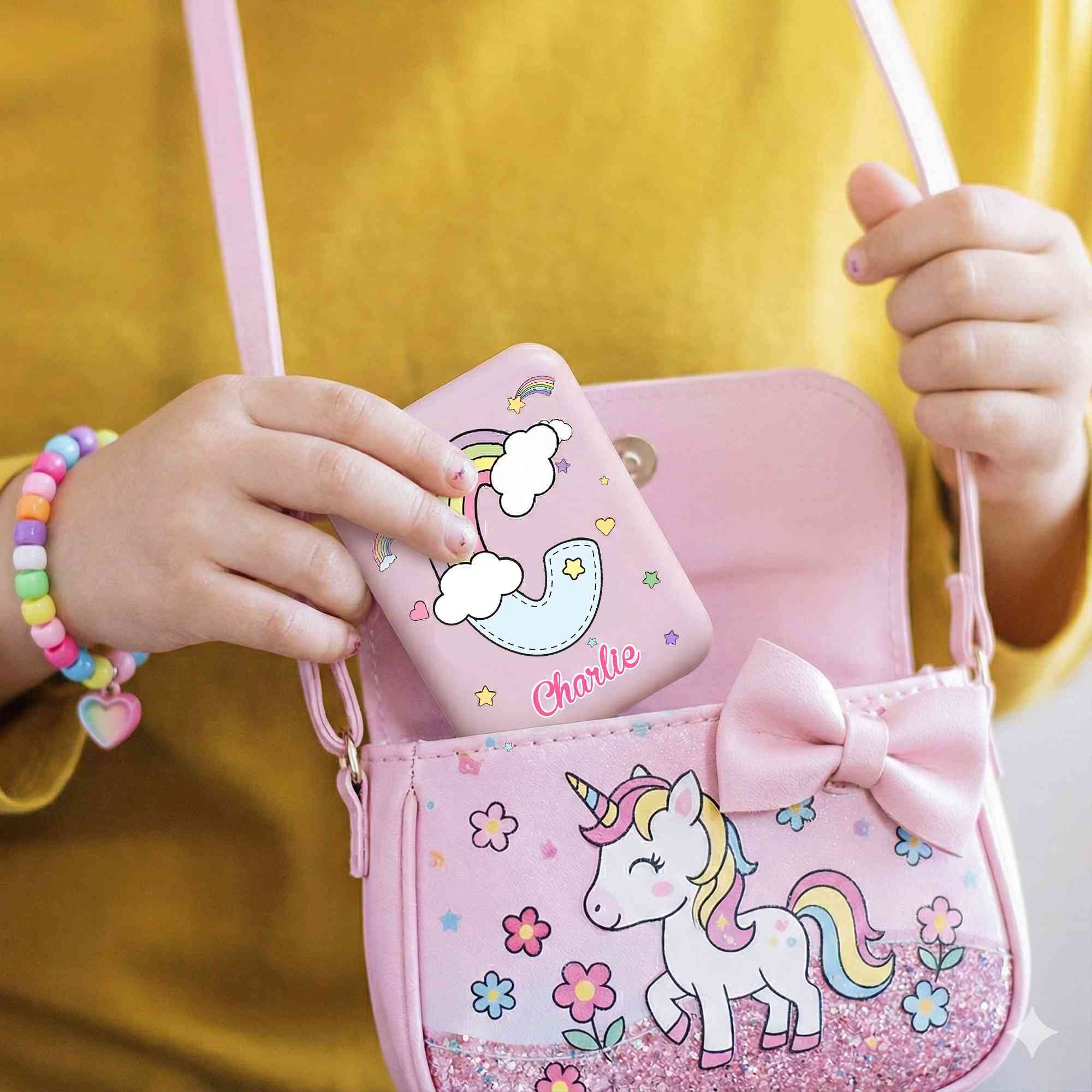 | Estilo | Espejo de maquillaje de viaje LED con nombre personalizado, unicornio de fantasía arcoíris y alfabeto |