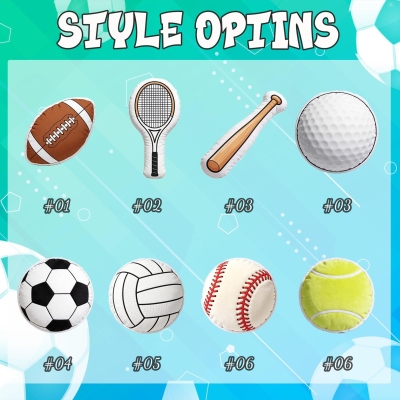 Cojín con temática deportiva : este cojín de felpa presenta un diseño divertido y realista de artículos deportivos populares, como pelotas de tenis, béisbol, bates y raquetas. Su aspecto suave y colorido aporta un toque lúdico a cualquier habitación, lo que lo hace perfecto para los aficionados que disfrutan celebrando su deporte favorito.