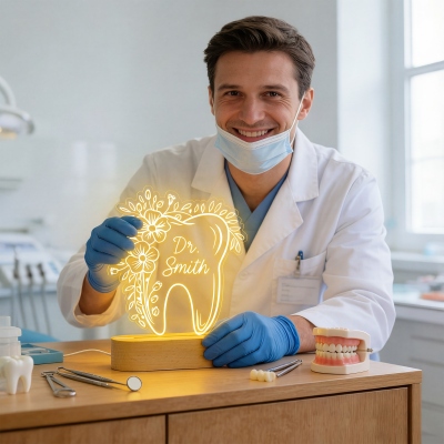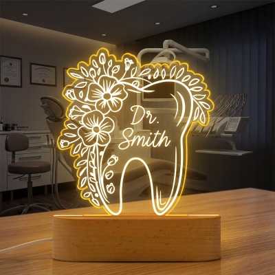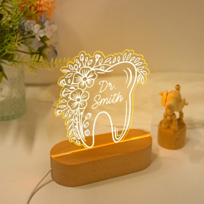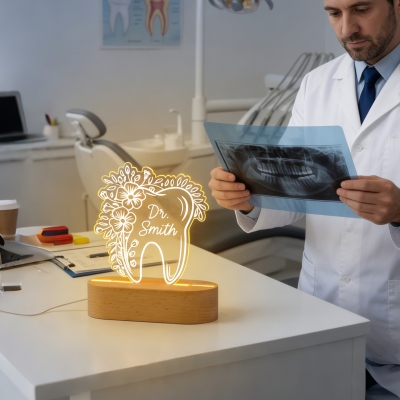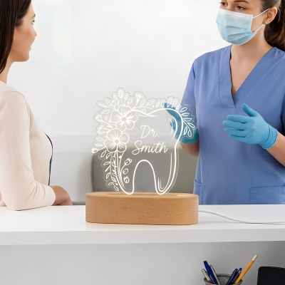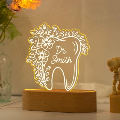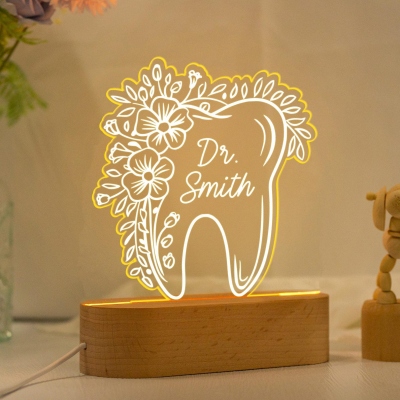 Diseño de diente único : esta elegante luz de noche presenta una silueta de diente de acrílico bellamente elaborada y adornada con delicados patrones florales, que simbolizan el arte y el cuidado de la odontología.