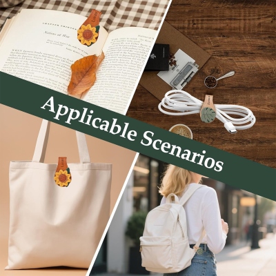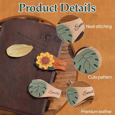 Marcapáginas Floral Vintage : Este elegante marcapáginas de cuero presenta un diseño floral artesanal —como una rosa, un girasol o una hoja— en suaves tonos rojos, amarillos, verdes y marrones. Su estilo vintage aporta encanto a cualquier estantería o rincón de lectura, convirtiéndolo en un compañero ideal para momentos de tranquilidad.