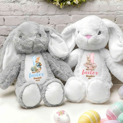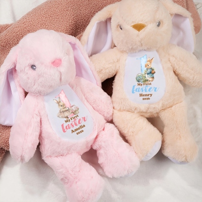 Nombre y año personalizados : añade el nombre y el año de tu bebé para crear un conejito de peluche único. El estampado personalizado convierte a este conejito de Pascua en un tesoro con mucho significado, en lugar de un simple juguete. Es una forma especial de celebrar la primera Pascua de tu hijo y crear un recuerdo personal verdaderamente especial.