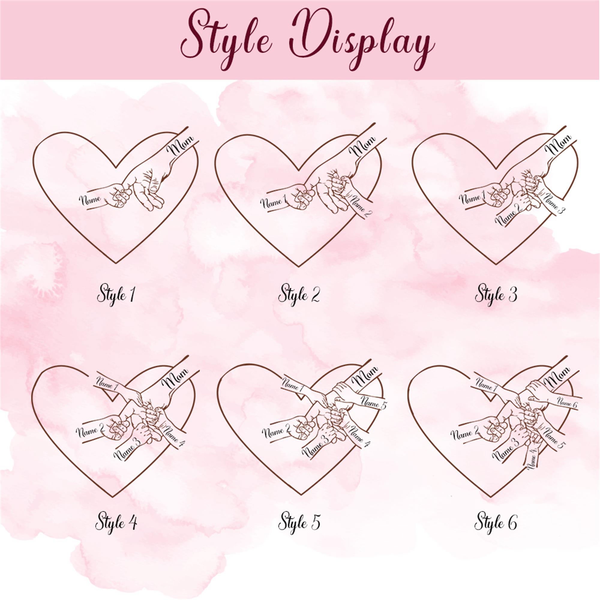 | Estilo | Camiseta personalizada con nombre, flor de nacimiento, corazón y familia para chocar los puños |