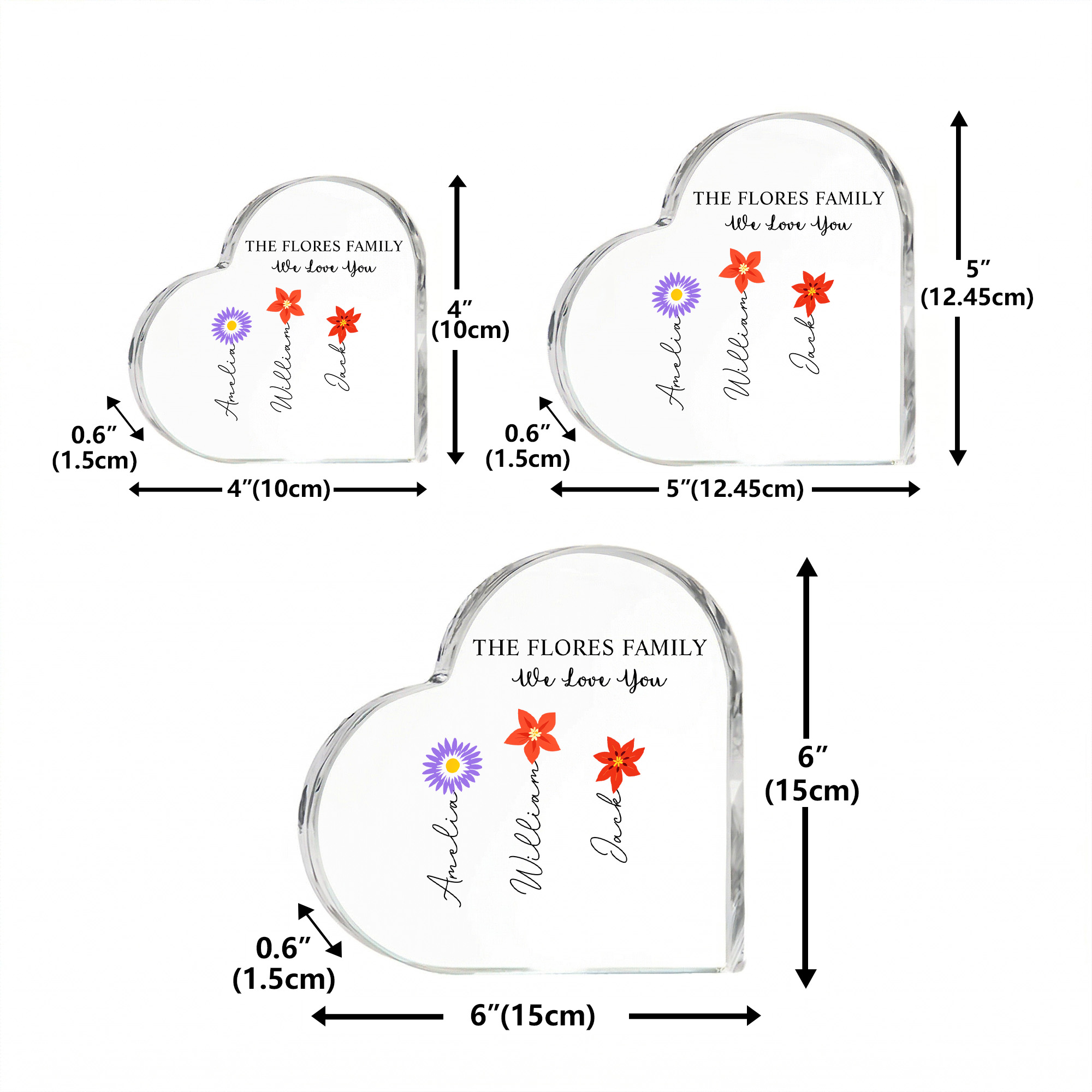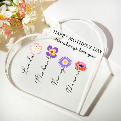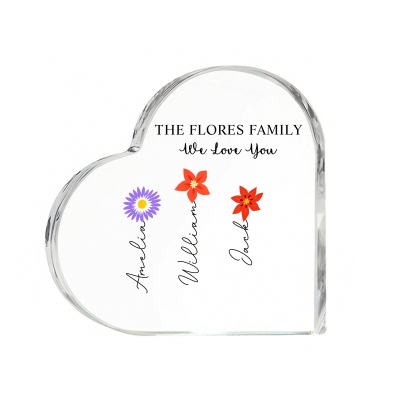 Toque Personalizado : Cada flor se puede combinar con un nombre personalizado, lo que permite representar a hijos o nietos de una manera significativa. Este toque personal convierte la pieza en un recuerdo verdaderamente único.