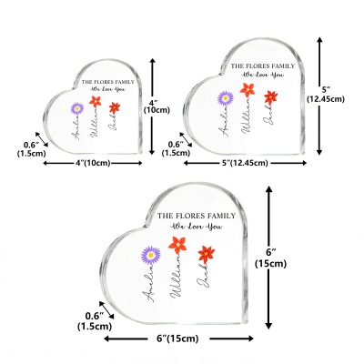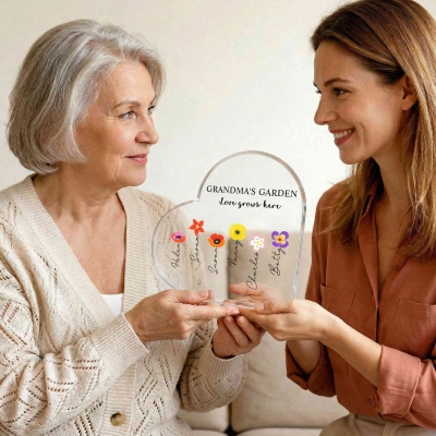 Diseño de Jardín del Corazón : La placa tiene forma de corazón y está adornada con coloridas flores de nacimiento, que simbolizan a cada ser querido en el jardín de mamá o la abuela. Los brillantes detalles florales crean un estilo cálido y alegre que destaca en cualquier escritorio o estante.