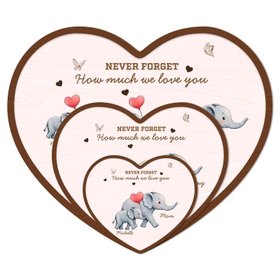 Diseño de elefante conmovedor : Esta pieza presenta a una cariñosa mamá elefanta con sus crías dentro de un marco en forma de corazón, simbolizando los lazos familiares, el cuidado y la protección. Sus líneas suaves y su composición equilibrada aportan un toque acogedor y significativo a cualquier espacio.