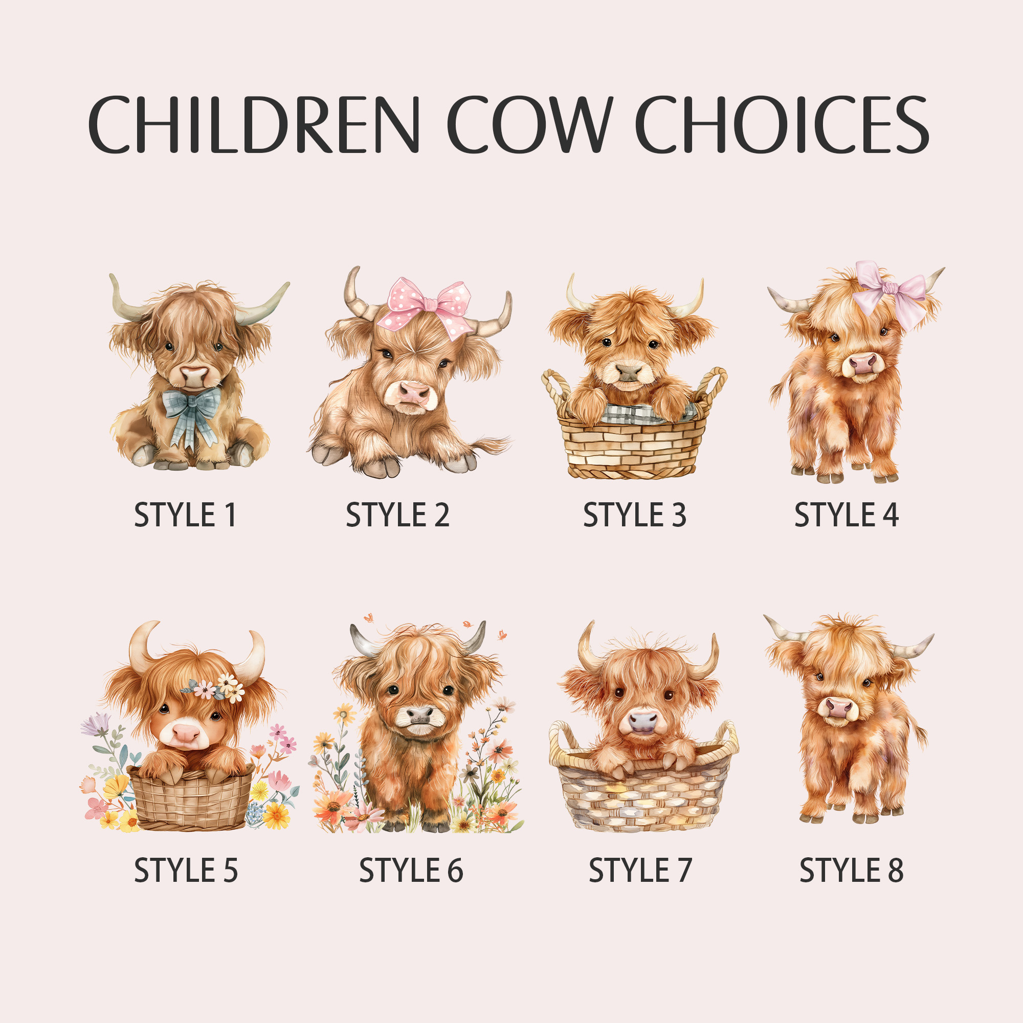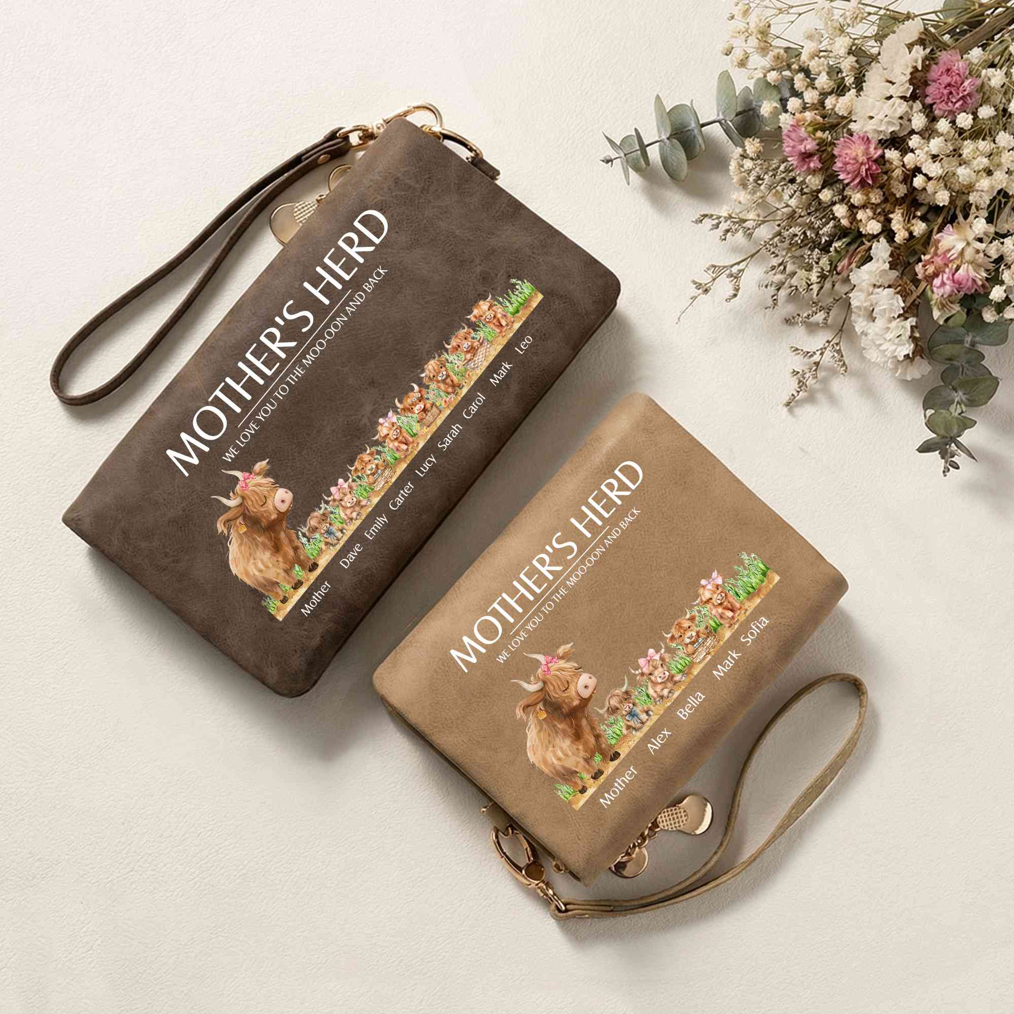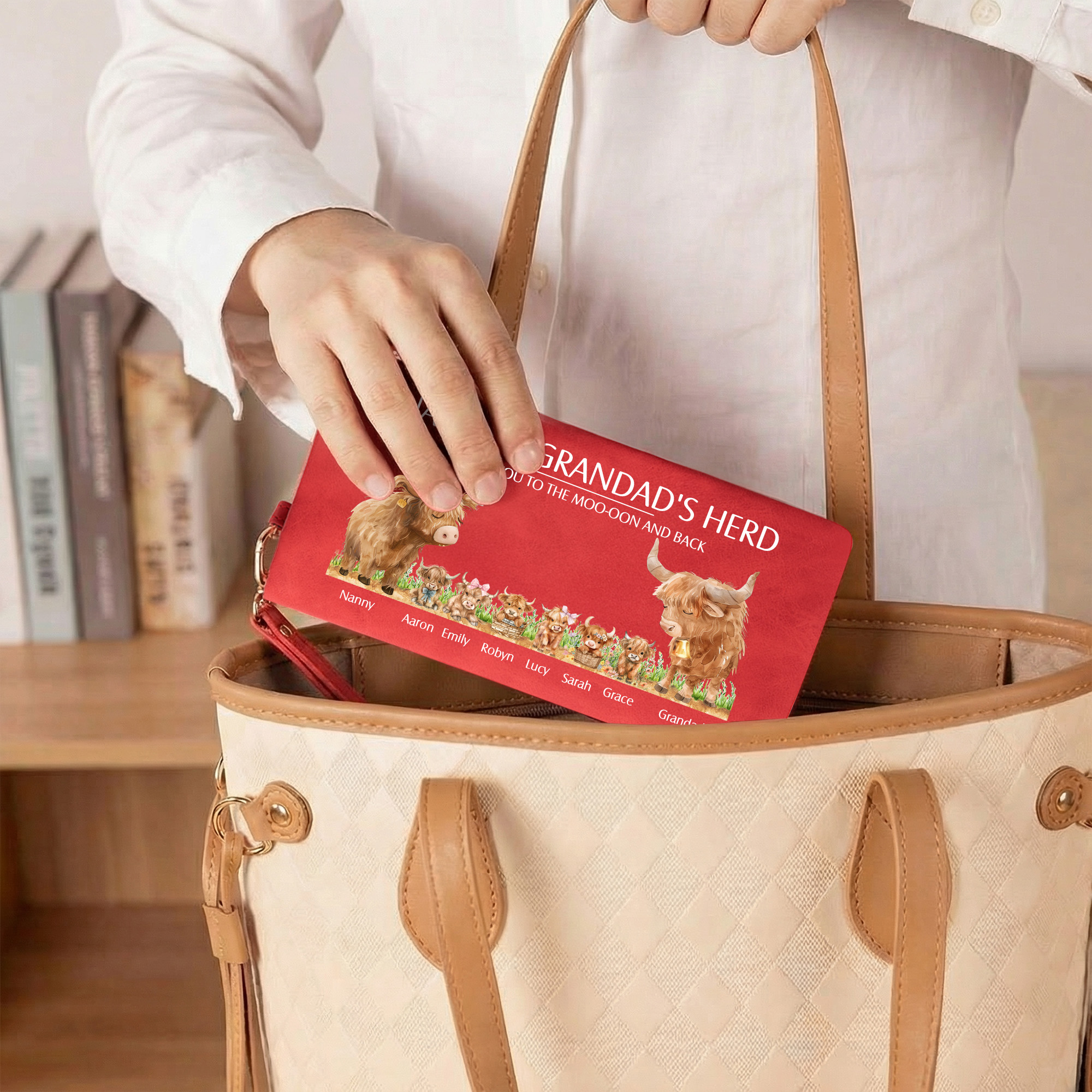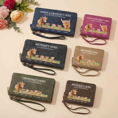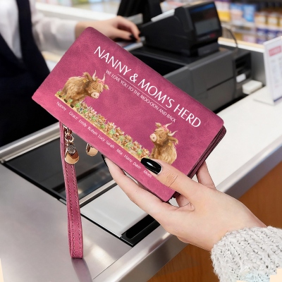 | Estilo | Cartera tríptico personalizada con nombres de la familia Highland Cow |