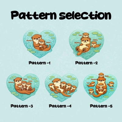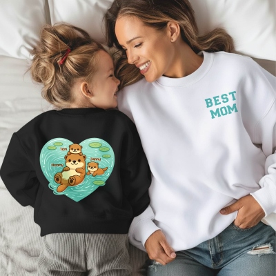 | Estilo | Camiseta/sudadera personalizada con diseño de corazón "Otter Mama & Babies" y nombres de mamás y bebés. |