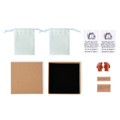 | Estilo | Caja de regalo pequeña con nombres personalizados y bolsitas de terciopelo de guijarros rojos de pingüino |