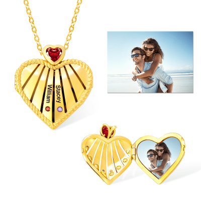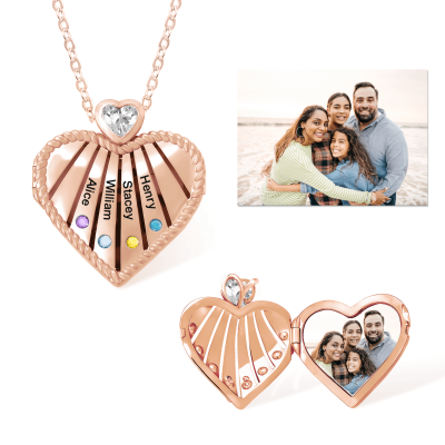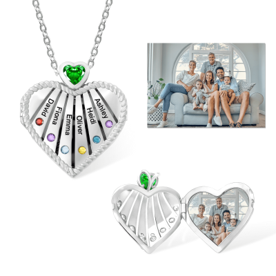 | Estilo | Collar con medallón de corazón con foto personalizado, piedras de nacimiento y nombres |