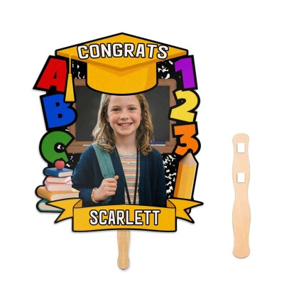 | Estilo | Abanico de mano personalizado con foto y nombre para felicitar la graduación, con mango de madera. |