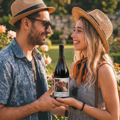 | Estilo | Pegatinas de vino personalizadas con foto y nombre y fecha |