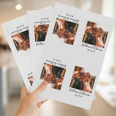 Foto destacada personalizada : Estas pegatinas, centradas en fotos significativas de parejas, esposos o hermanas, se pueden personalizar con la imagen, los nombres y la fecha de aniversario que elijas. Disponibles en cuatro tamaños diferentes, cada etiqueta tiene su propia historia especial y crea un recuerdo entrañable lleno de recuerdos imborrables.