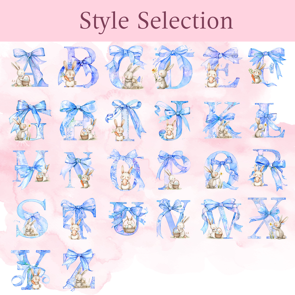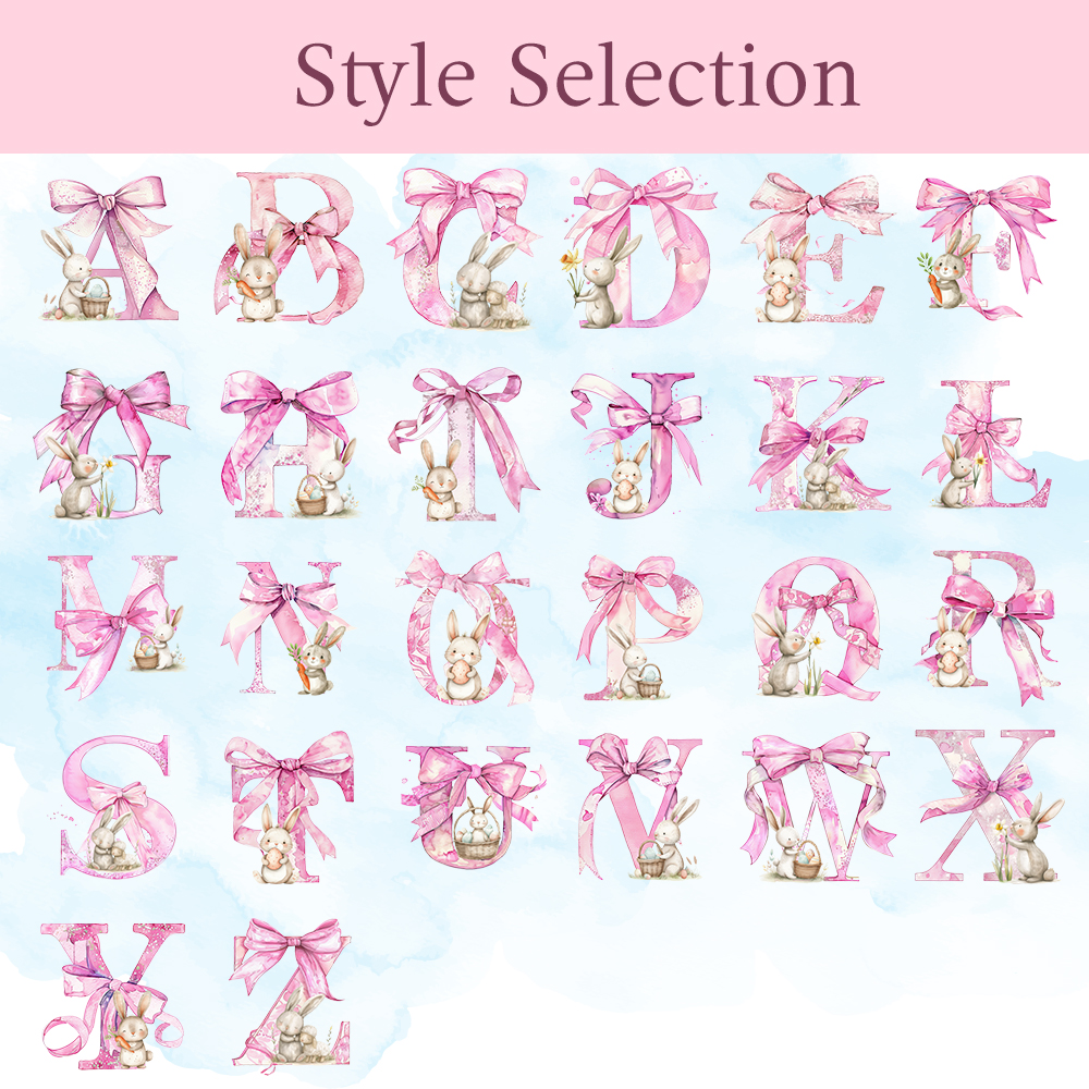 | Estilo | Muñeco de conejito personalizado con lazo rosa y nombre |