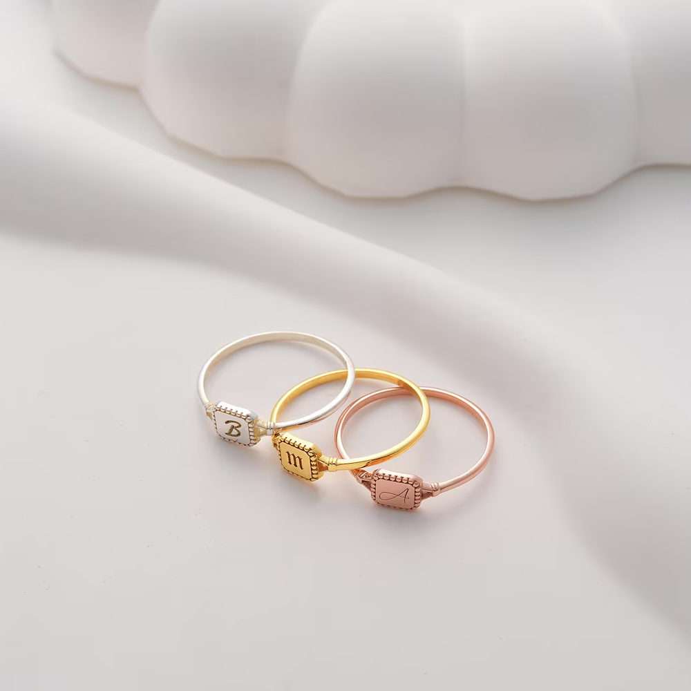 | Estilo | Anillo de sello para meñique personalizado con alfabeto |