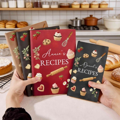 Portada con nombre personalizado : El cuaderno se puede personalizar con un nombre en la portada, convirtiéndolo en un recetario único. Este detalle personal ayuda a los reposteros a mantener sus recetas favoritas organizadas, a la vez que añade un toque personal que refleja su pasión por la repostería.