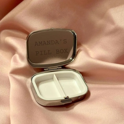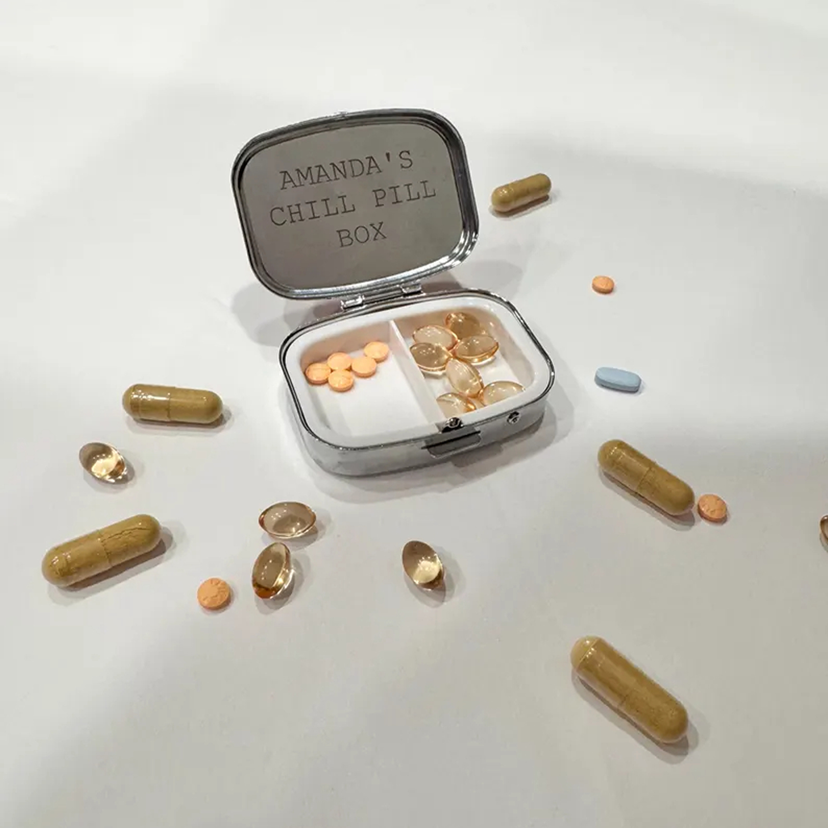 Etiqueta con nombre personalizada : Incluye un nombre o mensaje personalizado impreso en la tapa, como "Pastillero tranquilo de Amanda". Dale un toque de humor o cariño para que sea única.