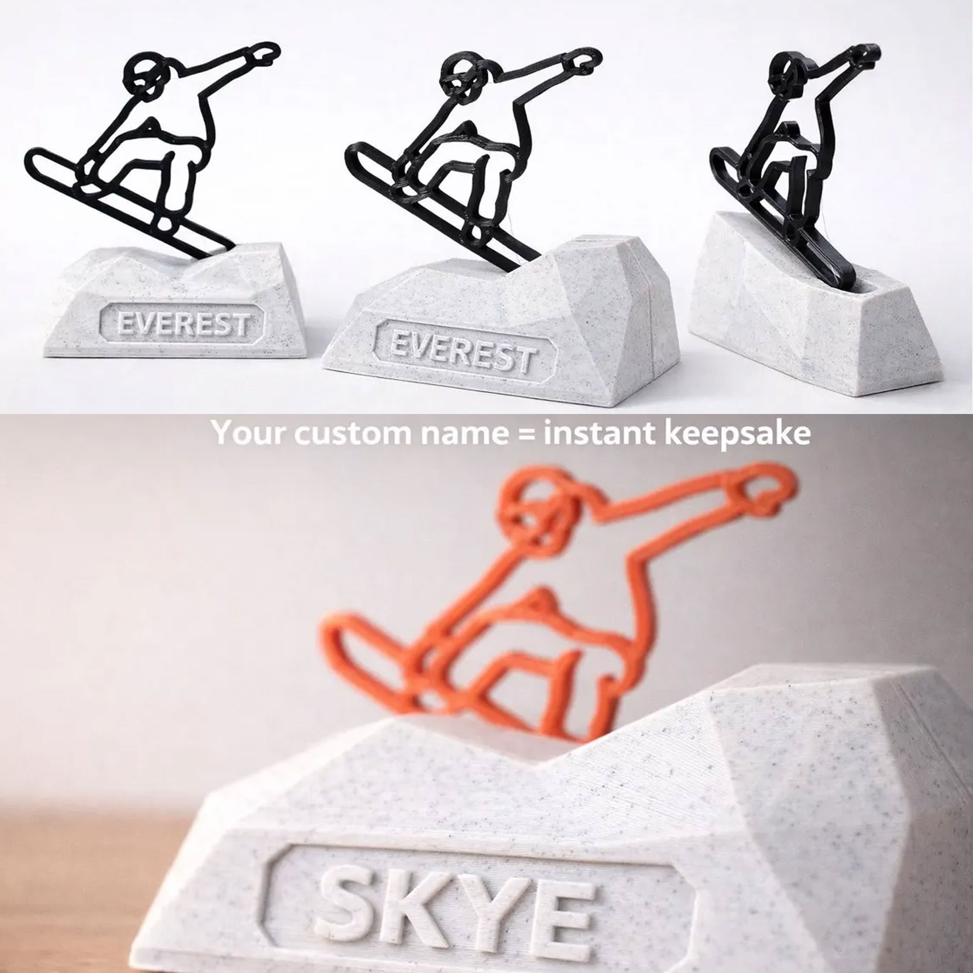 | Estilo | Trofeo de escritorio de snowboarder personalizado con nombre |