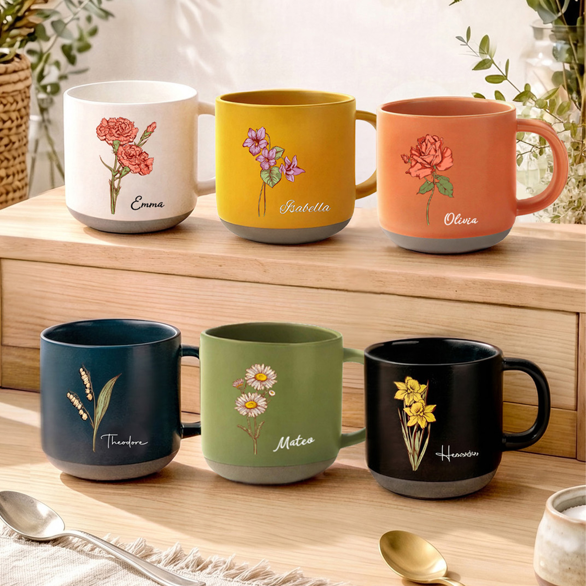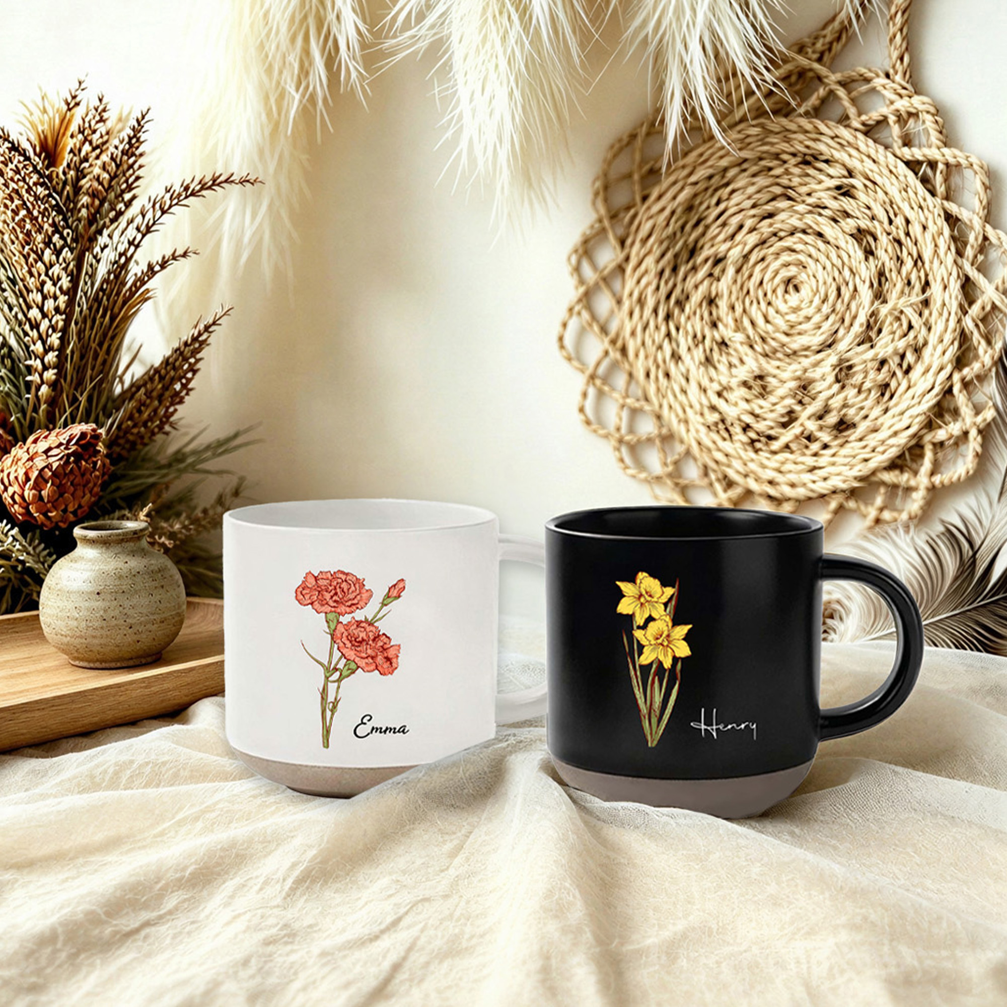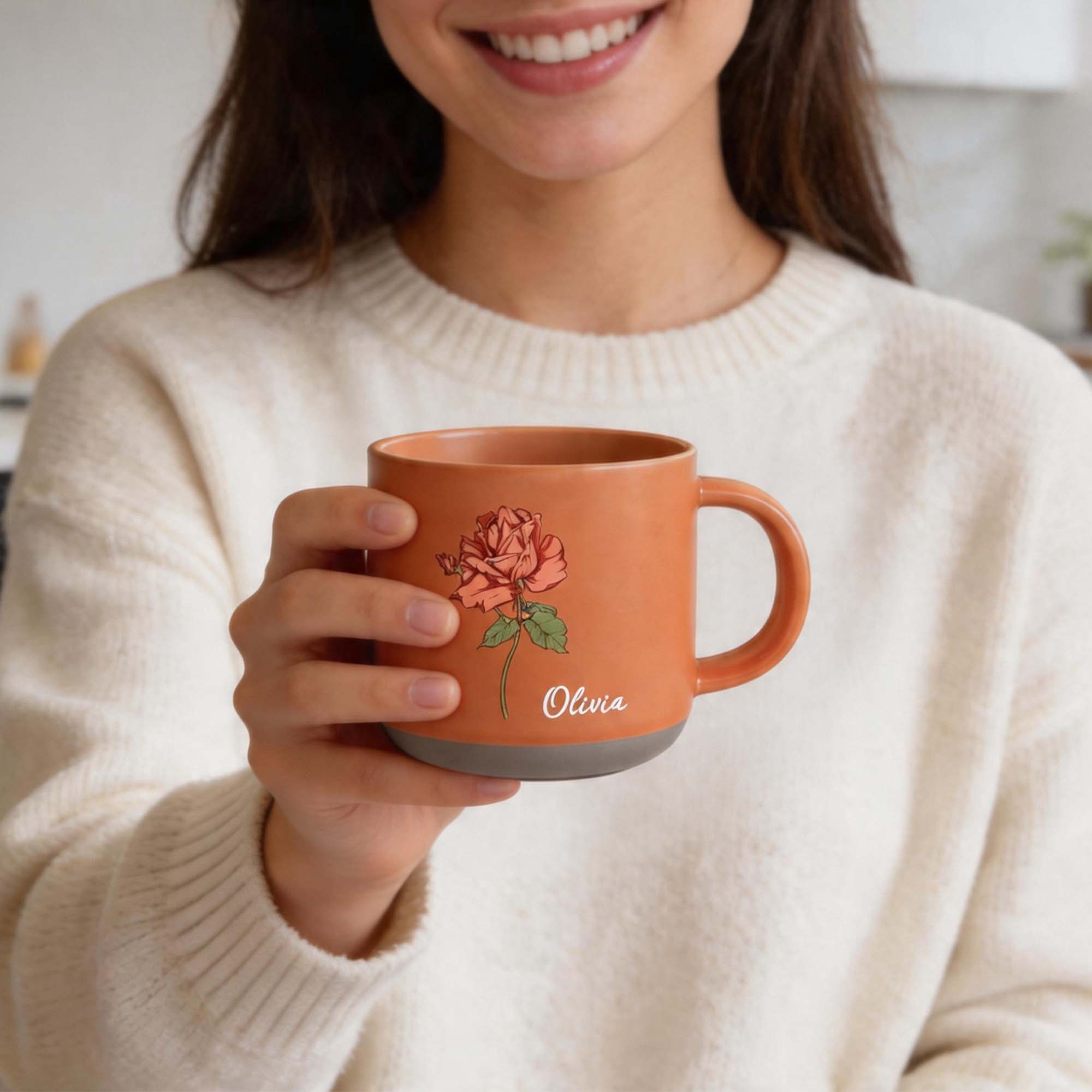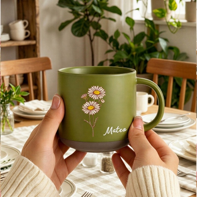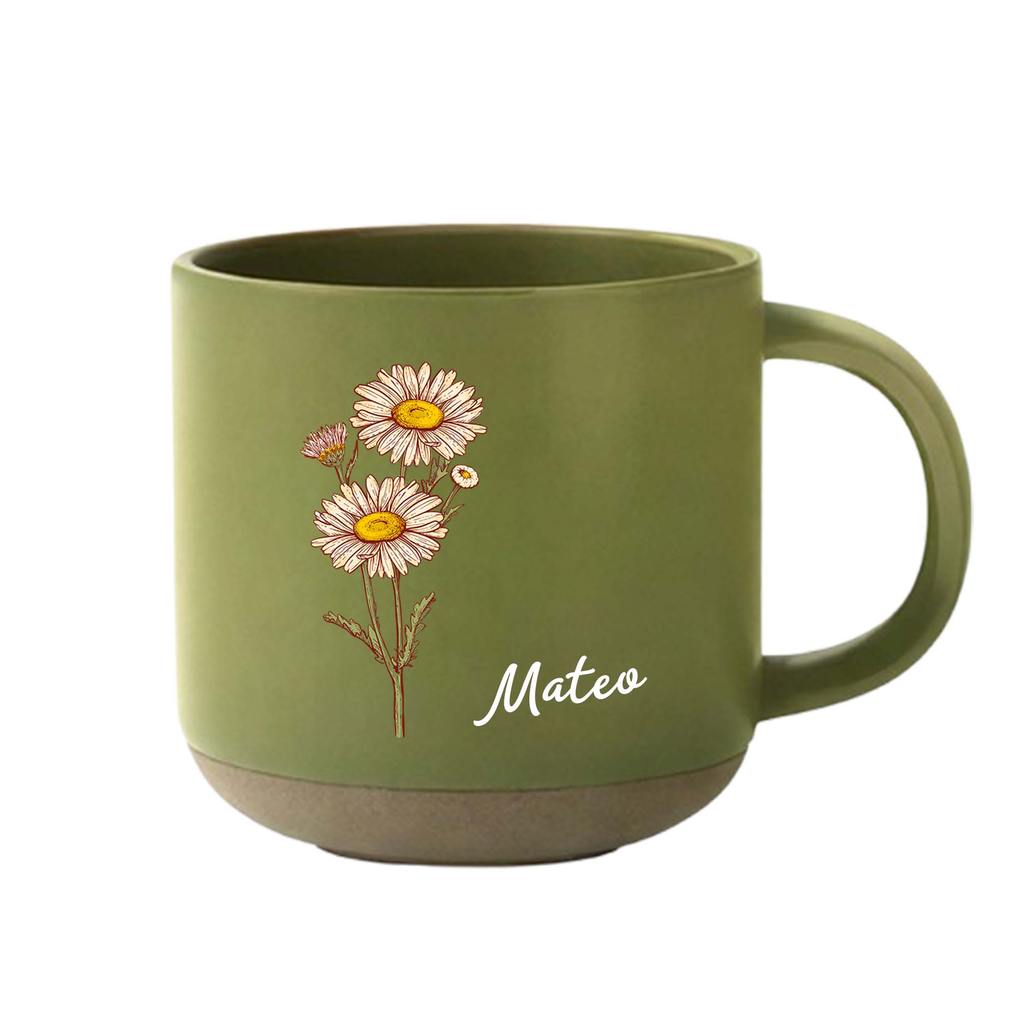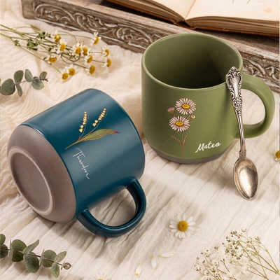 | Estilo | Taza de cerámica vintage personalizada con flor de nacimiento y nombre |