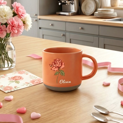 Personalización : La taza se puede personalizar con un nombre y la flor de nacimiento correspondiente, lo que le da un toque personal, especial y único. La combinación de la flor de nacimiento y el nombre crea un recuerdo significativo para usar a diario o para exhibir.