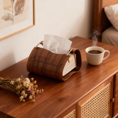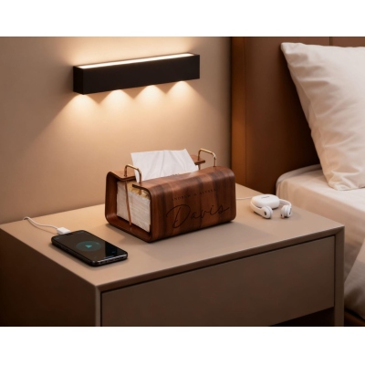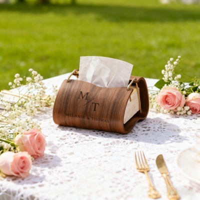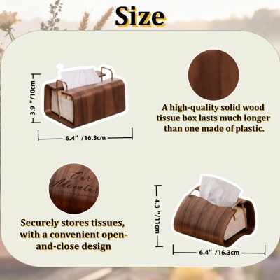 | Estilo | Caja de pañuelos personalizada de madera de nogal con nombre grabado |