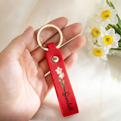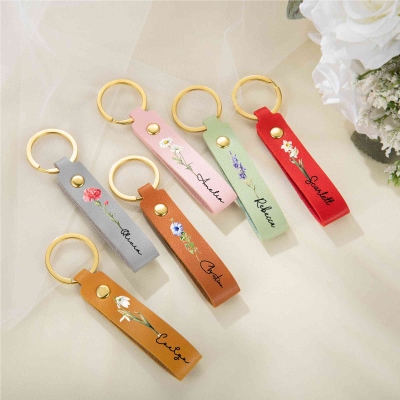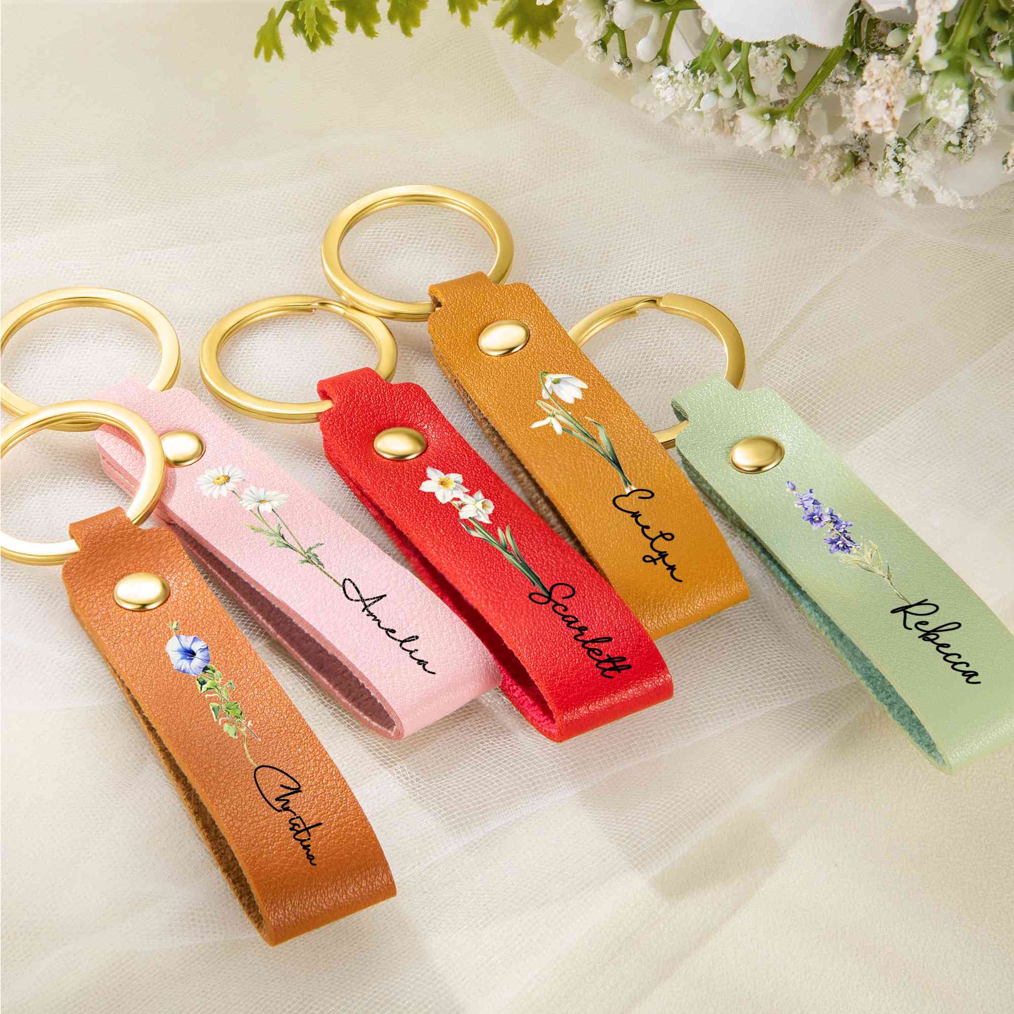 Llavero personalizado de flor de nacimiento de acuarela con nombre, llavero de cuero sintético, recuerdo de fiesta nupcial, regalo de cumpleaños o boda para ella, mejores amigas o mujeres.